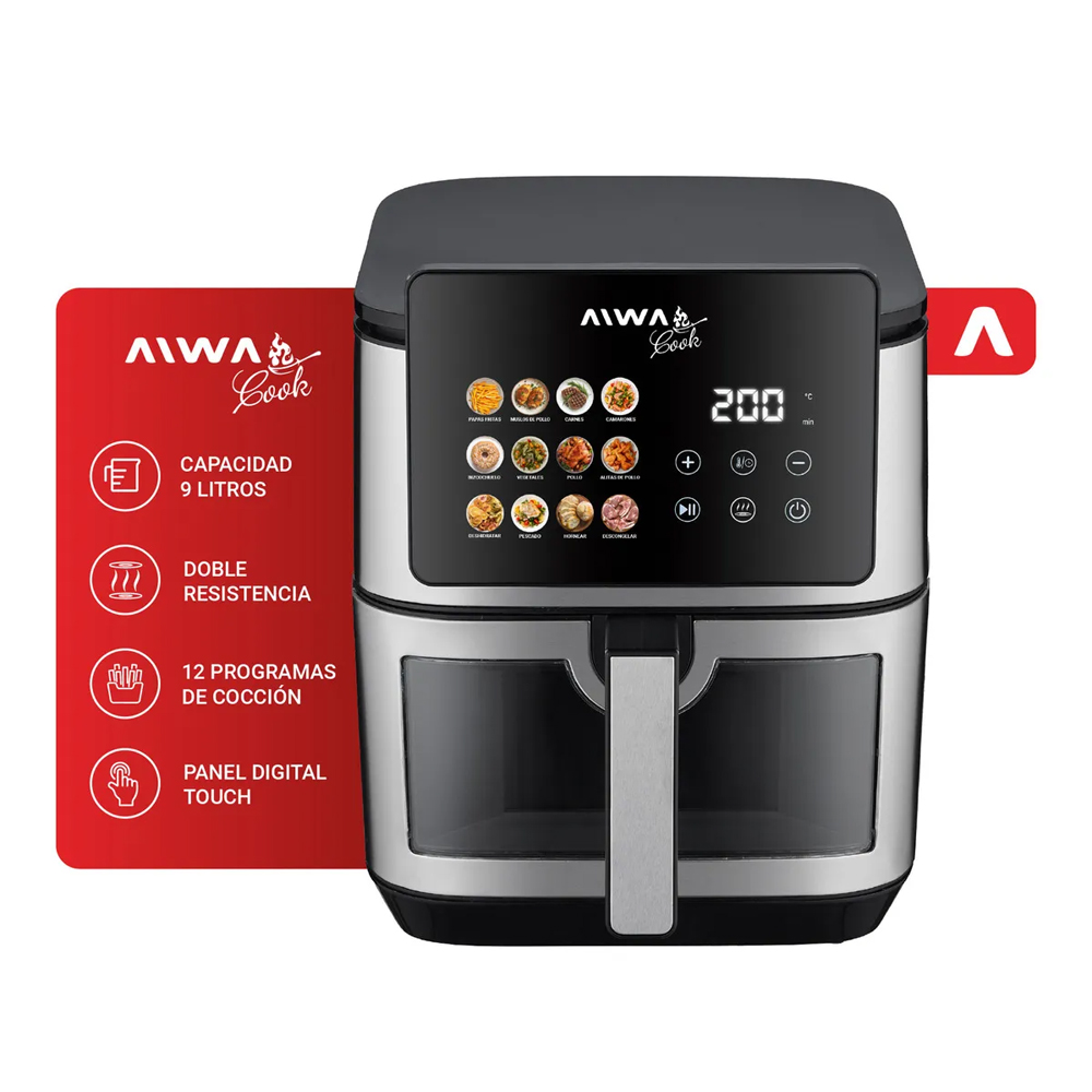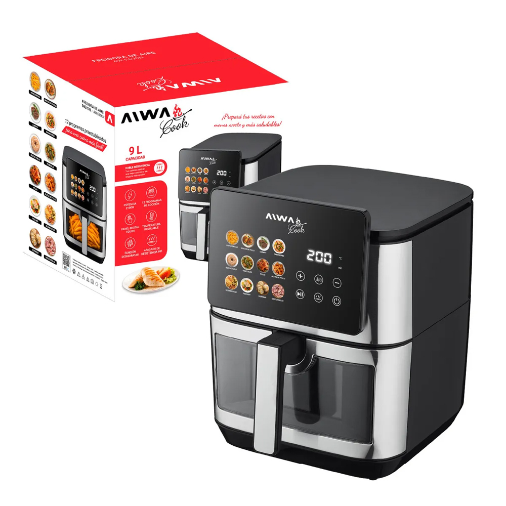 La freidora de aire digital AIWA AW-FA90N es la aliada definitiva para quienes buscan transformar su cocina en un espacio de sabor, salud y eficiencia. Con su generosa capacidad y tecnología de circulación de aire caliente, este equipo permite obtener texturas perfectamente crujientes por fuera y jugosas por dentro, reduciendo drásticamente el uso de aceite sin sacrificar el placer de tus platillos favoritos. Su panel táctil LED de última generación ofrece una experiencia intuitiva, permitiéndote navegar entre sus múltiples funciones preprogramadas para asar, hornear o freír con solo un toque, adaptándose al ritmo de tu vida moderna.