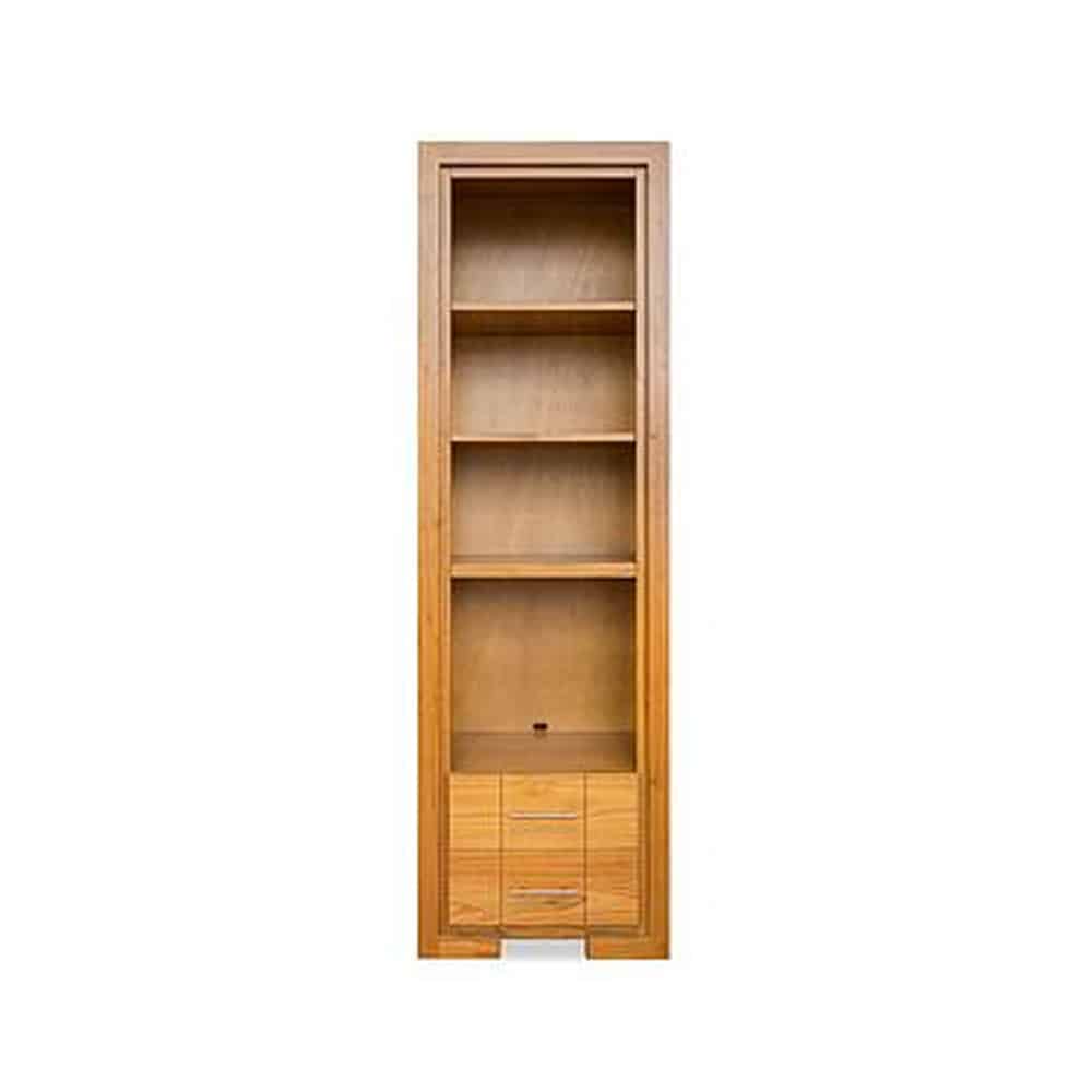 Modular Torre Nº5 de madera lustre roble, con estantes y cajones.